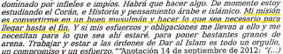 -"(...) Sigo teniendo en mi mente mi creencia en la Yihad interior pero sobretodo pero sobretodo la exterior, de tanto leer me he dado cuenta que este mundo donde dos líneas delimitan el campo de batalla he sido absorbido por la Yihad mundial contra cruzados y judíos".