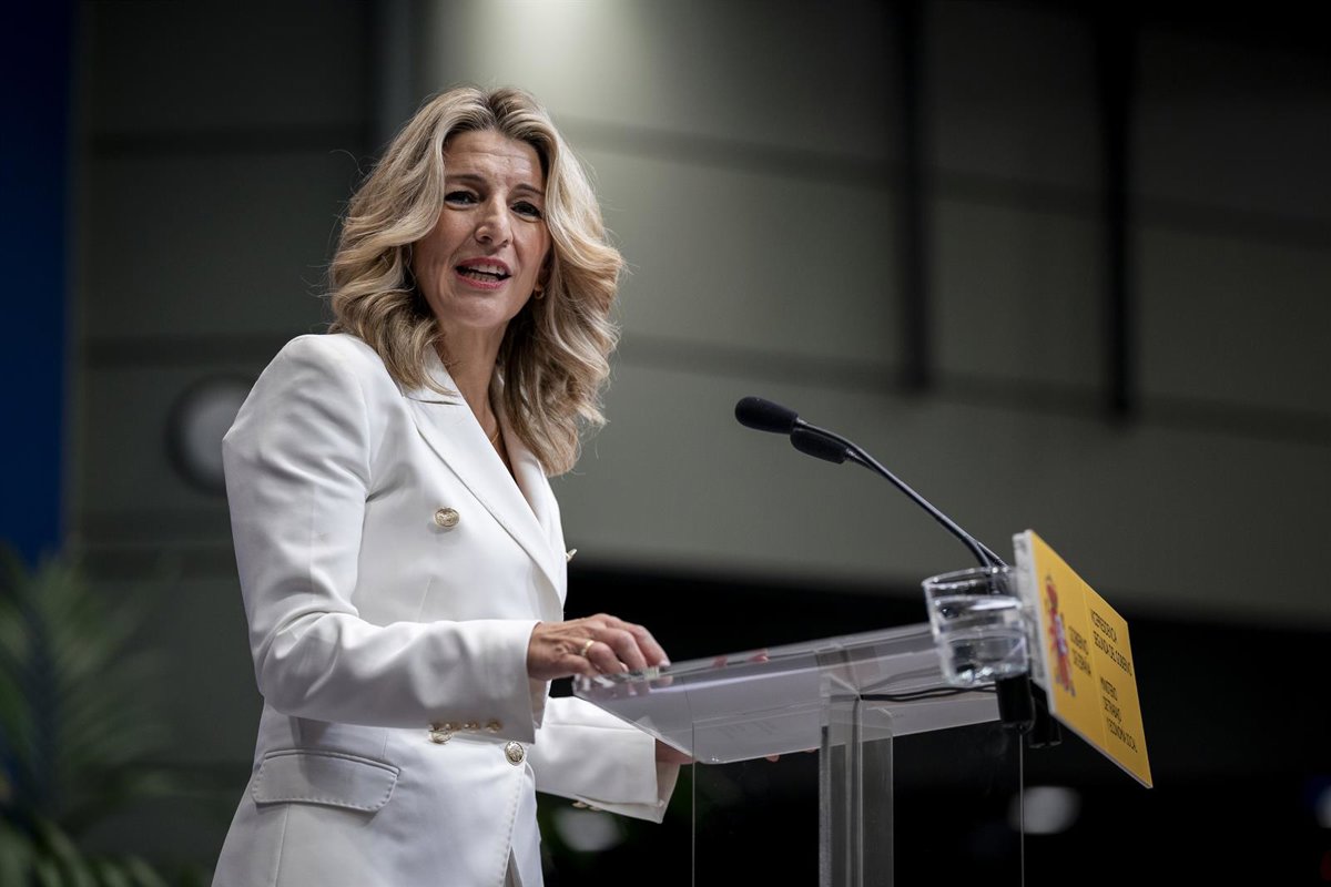 La vicepresidenta segunda, Yolanda Díaz, interviene durante la toma posesión de su cartera como vicepresidenta y ministra de Trabajo y Economía Social, a 21 de noviembre de 2023, en Madrid (España). - A. Pérez Meca - Europa Press