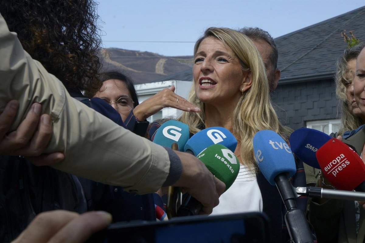 La vicepresidenta segunda y ministra de Trabajo y Economía Social, Yolanda Díaz, tiende a los medios en el Centro Social San Vicente de Leira, a 12 de septiembre de 2025, en Vilamartín de Valdeorras, Ourense, Galicia (España). - Rosa Veiga - Europa Press
