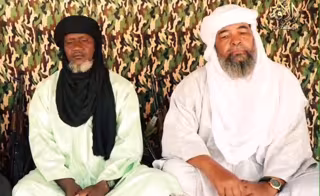 Archivo - Iyad ag Ghali (d), líder de JNIM, y Amadou Koufa (i) - VÍDEO DE JNIM - Archivo