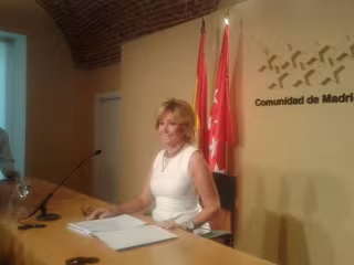Aguirre en la rueda de prensa de su dimisión como presidenta de Madrid