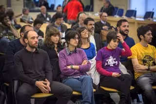 Marcos ha sido la primera diputada en comparecer por videoconferencia en la tercera jornada del juicio que se sigue en la Audiencia Nacional contra 19 acusados por asediar la Cámara autonómica para protestar contra los recortes e impedir que los parlamentarios votaran los Presupuestos catalanes. Unos hechos por los que el Fiscal pide cinco años y medio de cárcel y Manos Limpias nueve años de prisión para cada uno de ellos.