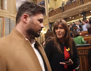 La portavoz de Junts per Catalunya (JxCat), Laura Borràs, hablando con el de ERC, Gabriel Rufián, en el Congreso - EDUARDO PARRA - EUROPA PRESS