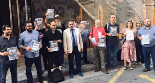 Representantes de Editorial Comanegra, la OCB y MÉS posan con ejemplares del libro 'On és l'Estella?' - EDITORIAL COMANEGRA - Archivo