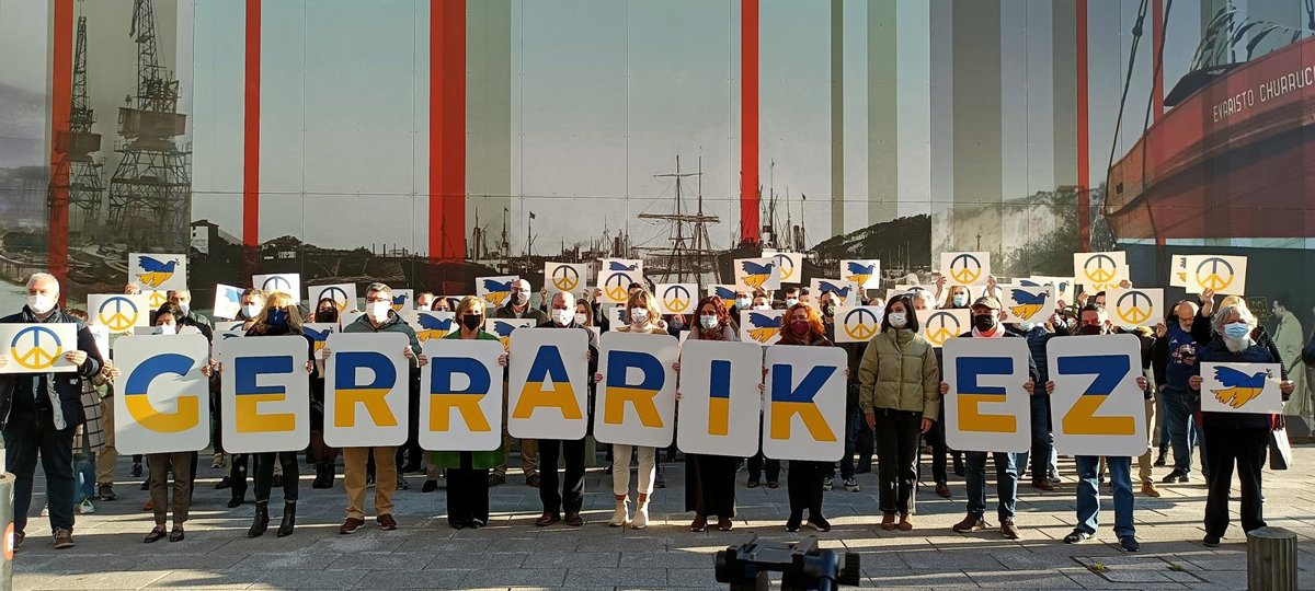 Dirigentes y representantes institucionales del PNV han clamado este sábado por la mañana en Bilbao contra la invasión de Rusia en Ucrania, y han exigido al presidente ruso, Vladimir Putin, que "cese inmediatamente esta brutal guerra" y que "saque las tropas" de suelo ucraniano "lo antes posible".