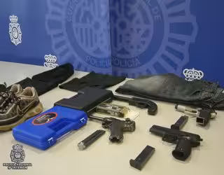 La detención de ambos, residentes en el mismo domicilio, se produjo este miércoles cuando abandonaban la casa, uno de ellos con un arma de fuego en la cintura y preparados para perpetrar otro atraco. Durante el registro, la Policía Nacional halló otras tres pistolas, dos simuladas y una de fuego real y las prendas utilizadas en el robo.