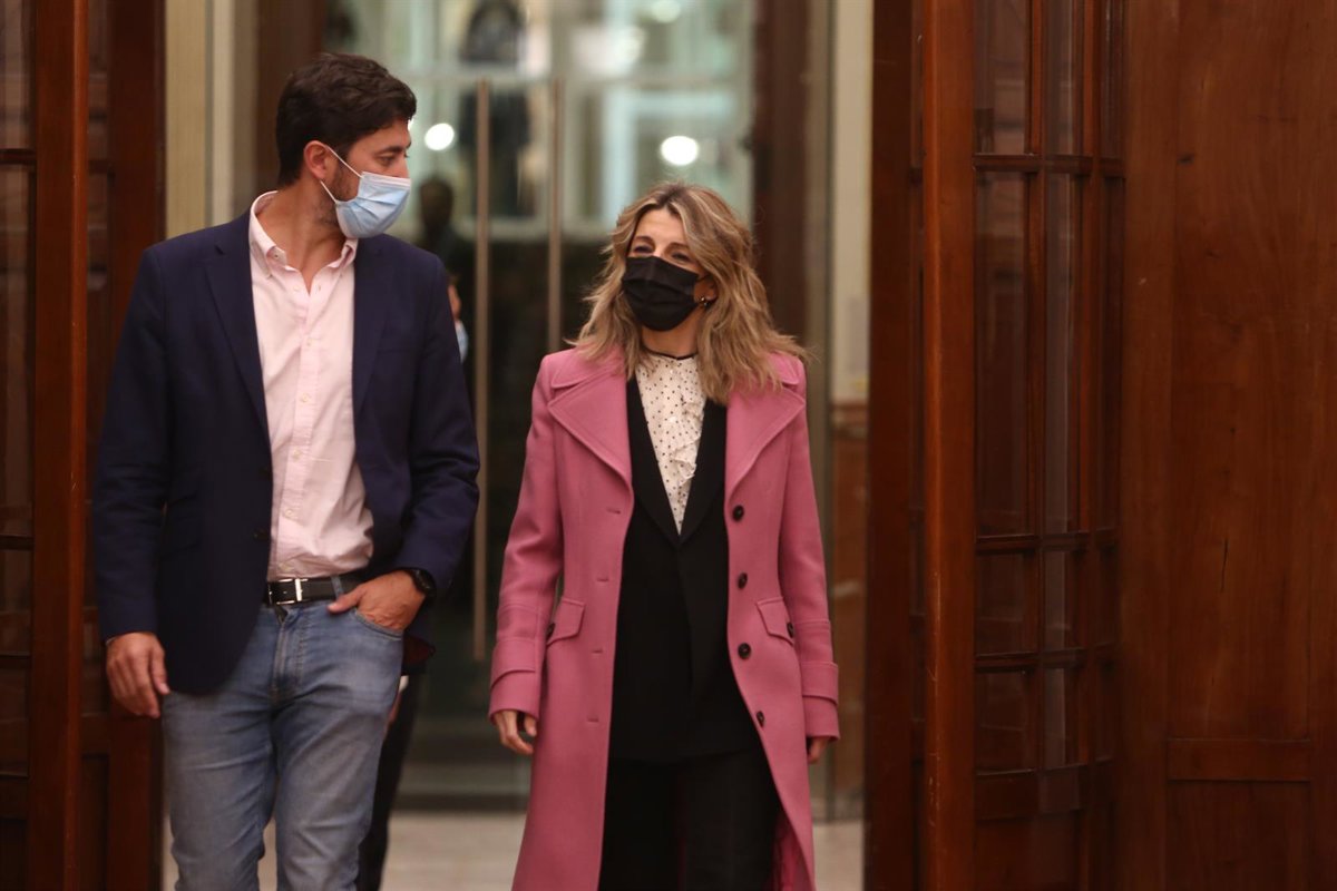 La vicepresidenta segunda y ministra de Trabajo, Yolanda Díaz, a su llegada a una sesión plenaria en el Congreso de los Diputados, a 14 de diciembre de 2021, en Madrid, (España). - Ricardo Rubio - Europa Press