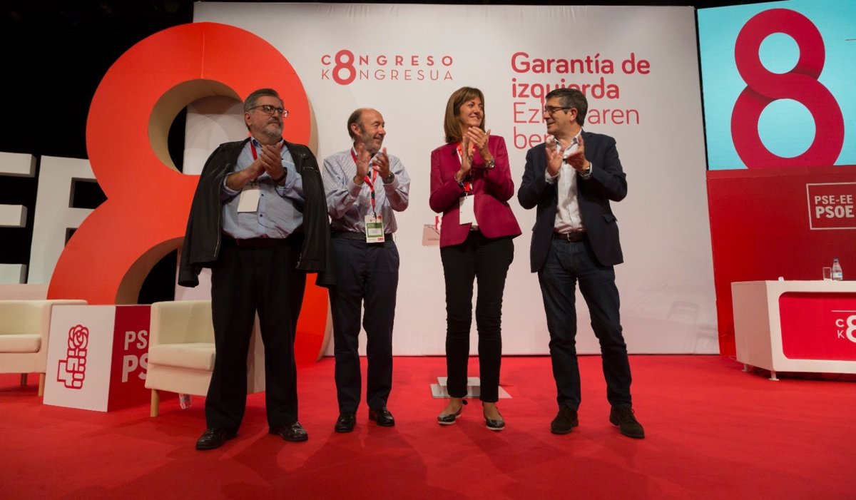 El ex presidente del PSE-EE Jesús Eguiguren, el ex ministro del Interior, José Antonio Rubalcaba, la líder del PSE-EE, Idoia Mendia, y el ex Lehendakari, Patxi López - PSE-EE
