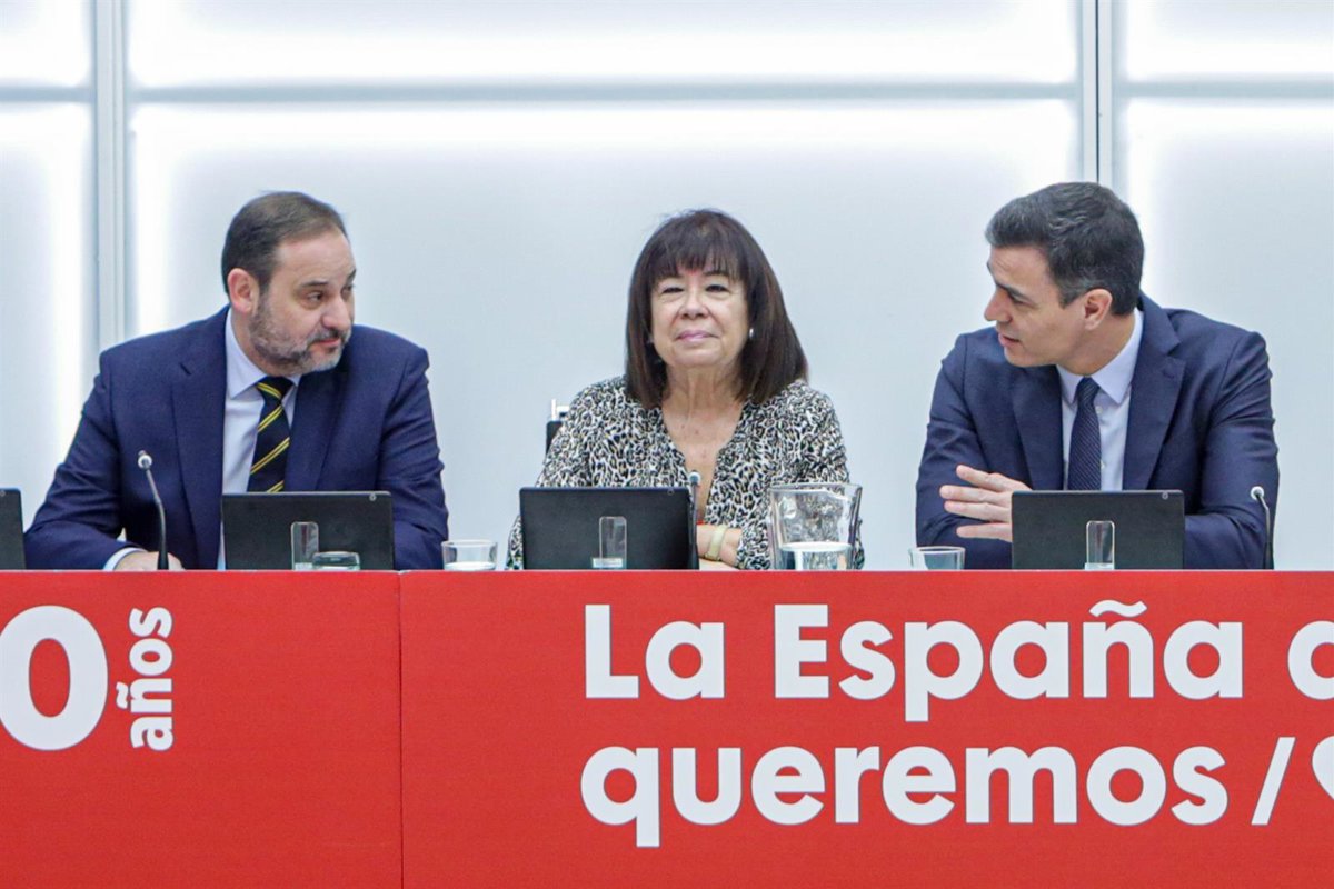 (I-D) El ministro de Transportes, Movilidad y Agenda Urbana, José Luis Ábalos, la presidenta del PSOE, Cristina Narbona, y el presidente del Gobierno, Pedro Sánchez, durante una reunión de la Comisión Ejecutiva Federal del PSOE - Ricardo Rubio - Europa Press - Archivo