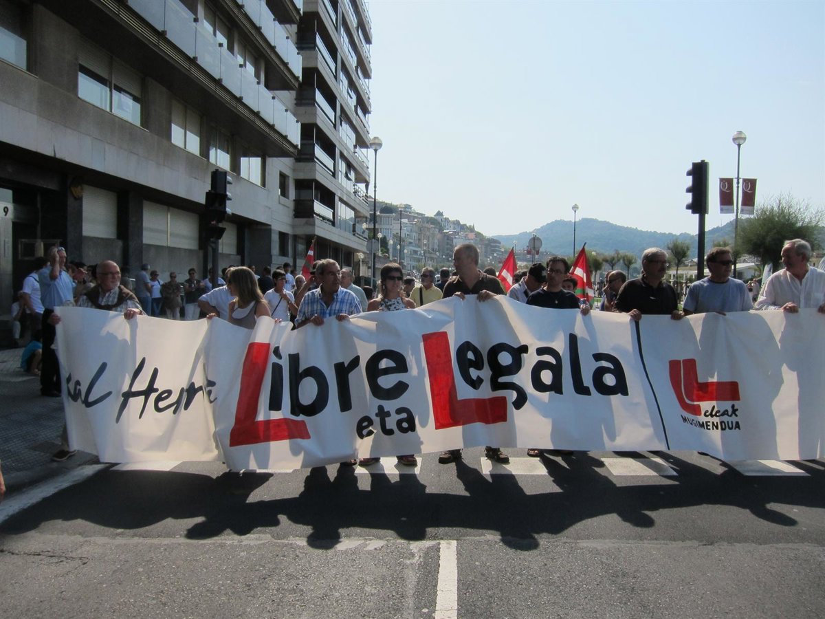 Varios miles de personas se han manifestado esta tarde en San Sebastián en defensa de una "Euskal Herria libre y legal", en respuesta a la convocatoria del movimiento por los Derechos Civiles, Eleak, que, al término de la marcha, ha defendido la renuncia definitiva al uso de la violencia "por todas las partes" y ha reclamado la legalización de Sortu.
