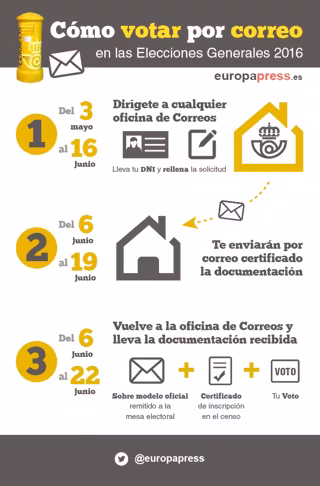 El plazo para votar por correo ya está abierto, después de que este martes el Rey Felipe VI haya firmado el real decreto por el que dispone la disolución de las Cortes y convocatoria de las elecciones para el próximo 26 de junio.