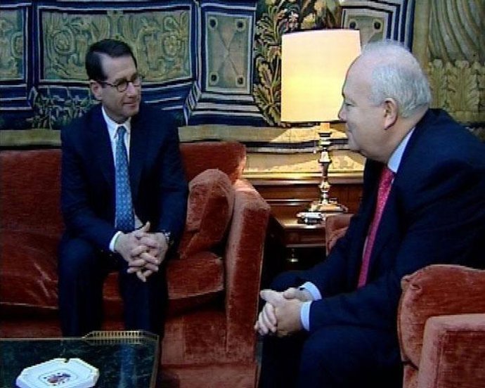 En una declaración institucional sin preguntas, el flamante embajador estadounidense dijo estar "encantado" de estar en España después de haber mantenido "un muy buen encuentro" con el titular de Exteriores español, Miguel Ángel Moratinos.
