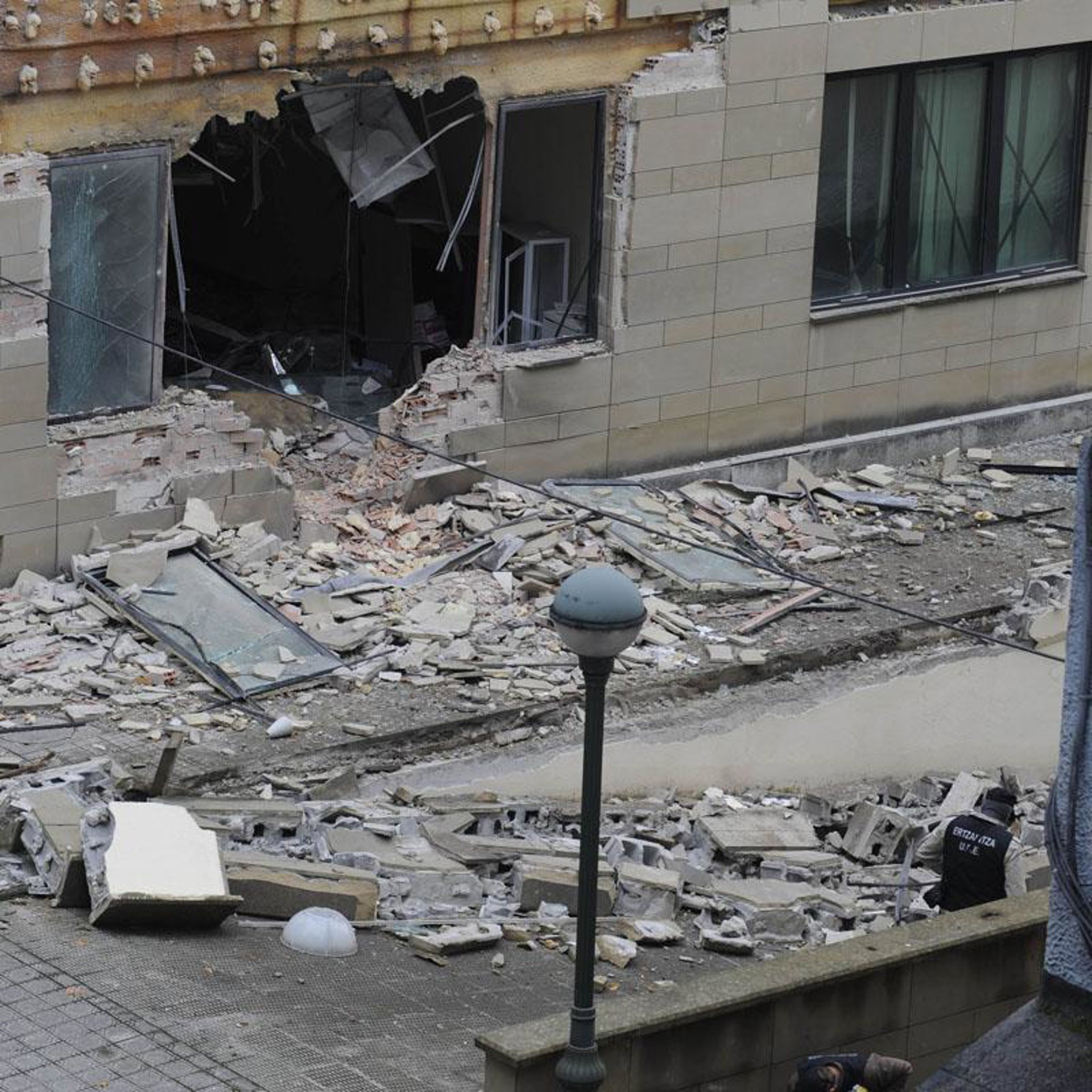 En su visita al lugar de los hechos, el consejero de Justicia vasco señaló que cuando se colocó la bomba "había en el lugar una persona que controla las cámaras" y que, en el momento de la colocación del artefacto "estaba monitorizando la zona del edificio". Fue gracias a la Ertzaintza quien puso salvarle la vida, señaló, ya que "comunicó a esta persona lo que ocurría" y éste pudo salir del edificio antes de la explosión. "Se ha salvado de milagro", aseveró.