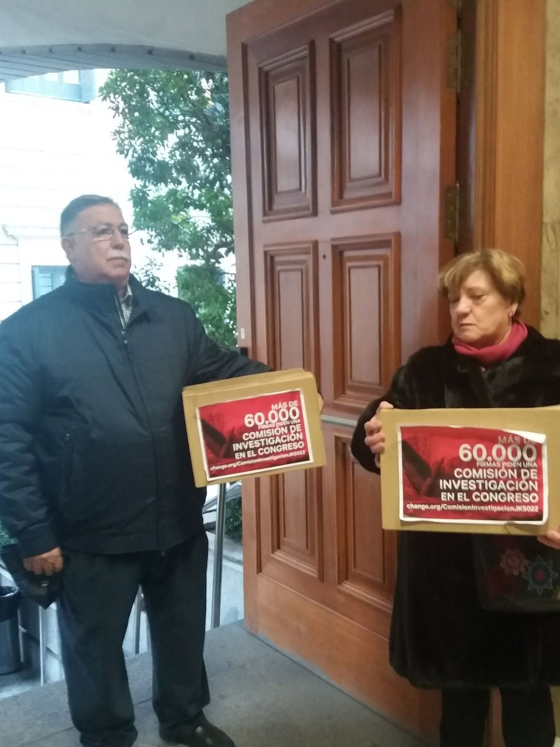 La Asociación de Afectados del Vuelo JK5022 ha entregado este lunes en el Congreso cerca de 70.000 firmas de apoyo a la apertura de una comisión que investigue en la Cámara Baja las causas del accidente de Spanair, ocurrido en el aeropuerto Madrid-Barajas en agosto de 2008. El Pleno del Congreso decidirá este martes si crea o no esa comisión reclamada por Unidos Podemos y ERC.
