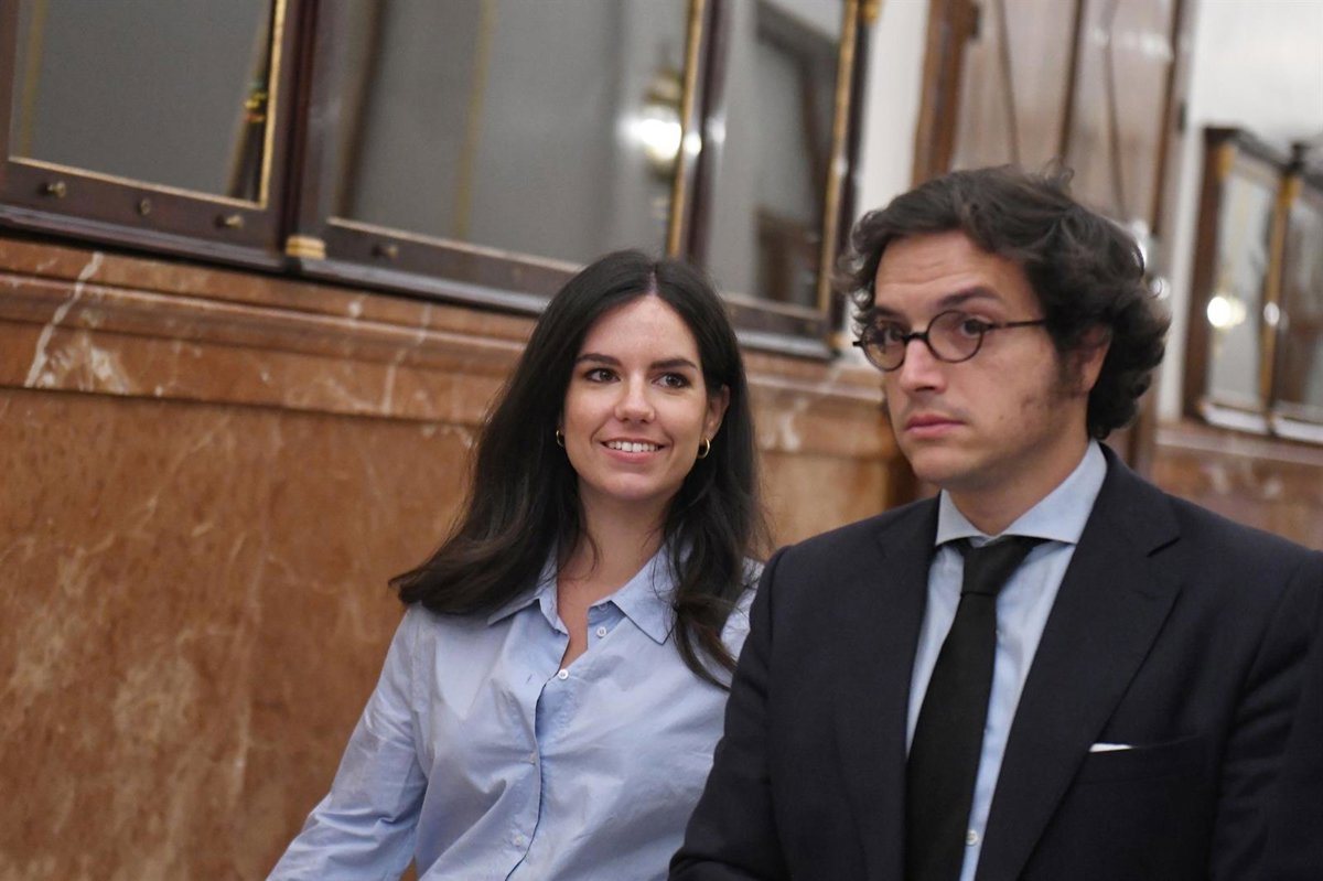 Archivo - Pepa Millán y José María Figaredo, dirigentes del grupo parlamentario de Vox en el Congreso, a su salida de una sesión plenaria e - Fernando Sánchez - Europa Press - Archivo