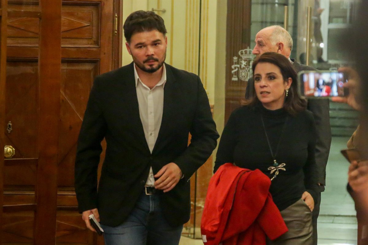 El portavoz de Esquerra Republicana (ERC) en el Congreso, Gabriel Rufián, y la portavoz del PSOE en el Congreso Adriana Lastra. - Ricardo Rubio - Europa Press