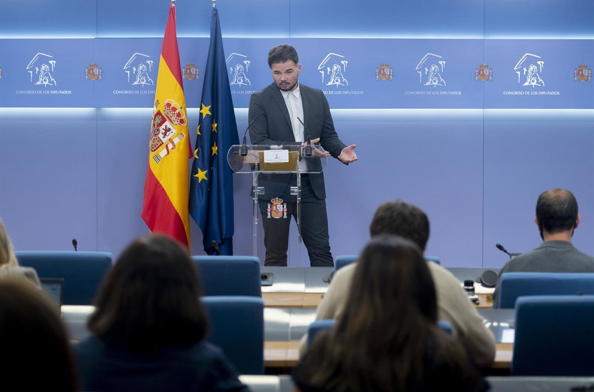 Archivo - El portavoz parlamentario de ERC, Gabriel Rufián, durante una rueda de prensa en el Congreso de los Diputados, a 29 de octubre de 2021, en Madrid (España). Rufián ha informado este viernes de que su grupo no presentará finalmente una enmienda - Alberto Ortega - Europa Press - Archivo