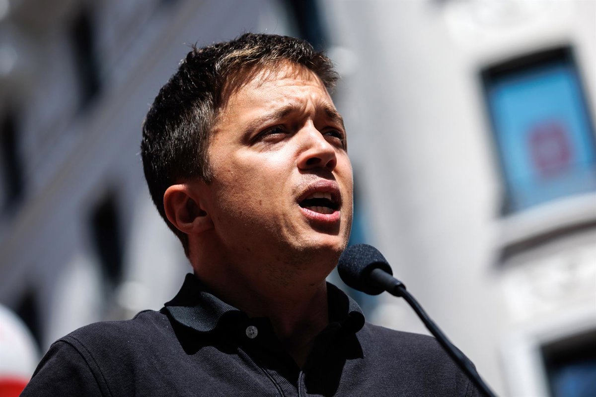 El líder de Más País y diputado en el Congreso, Iñigo Errejón, interviene tras la marcha por el Día Internacional de los Trabajadores o Primero de Mayo, en la Gran Vía, a 1 de mayo de 2022, en Madrid (España). - Alejandro Martínez Vélez - Europa Press