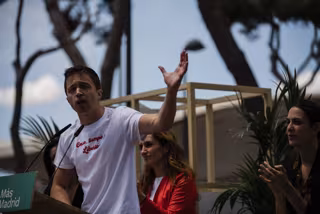 El líder de Más País, íñigo Errejón, interviene durante un acto de Más Madrid, en el parque Lorenzo Azofra, a 13 de mayo de 2023, en Getafe, Madrid (España). - Mateo Lanzuela - Europa Press