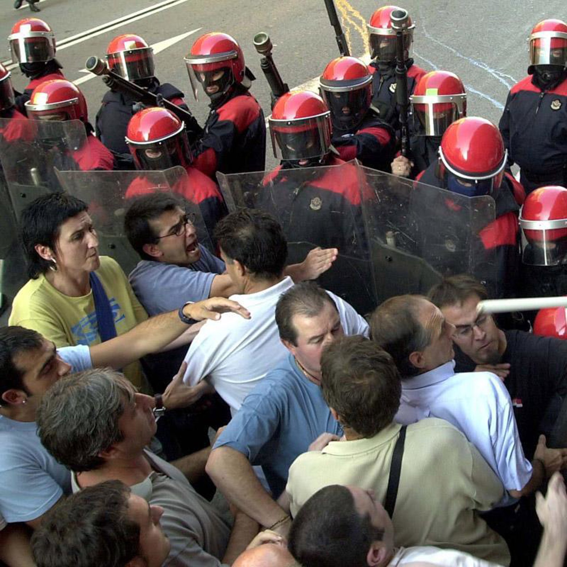 A esa hora, los agentes de la Ertzaintza intentaron dispersar a los concentrados, que profirieron gritos de 'Independencia', y se produjo una carga policial, cuando en los alrededores del Boulevard, se produjeron incidentes, en concreto, en la calle Legazpi, al volcar y cruzar desconocidos contenedores en la calzada.