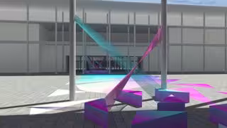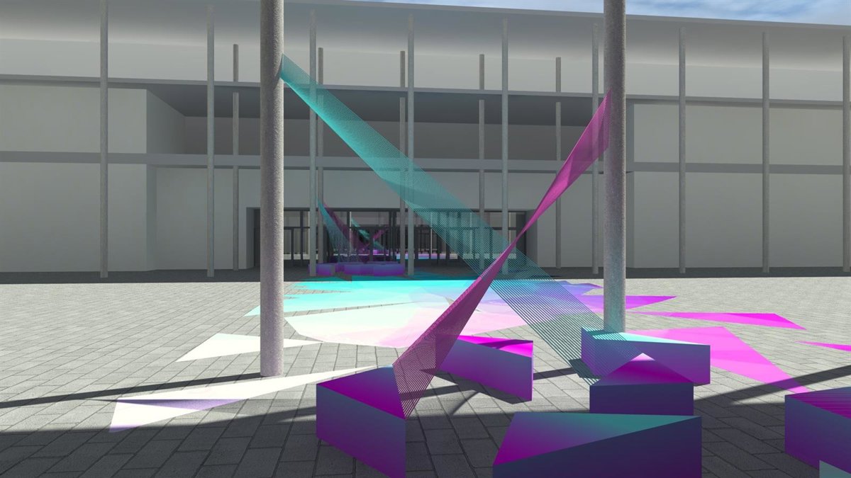 El primer proyecto, representado en la conexión exterior de los pabellones 7 y 8, con el nombre Dispersión, hace referencia "al efecto que se genera cuando la luz atraviesa un prisma y surge toda la gama cromática de color". Inspirados en este concepto los alumnos recurren a elementos "innovadores, como hilos y vinilos de colores llamativos que envolverán el espacio y conducirán al visitante a la plaza exterior favoreciendo el flujo entre ambos pabellones".