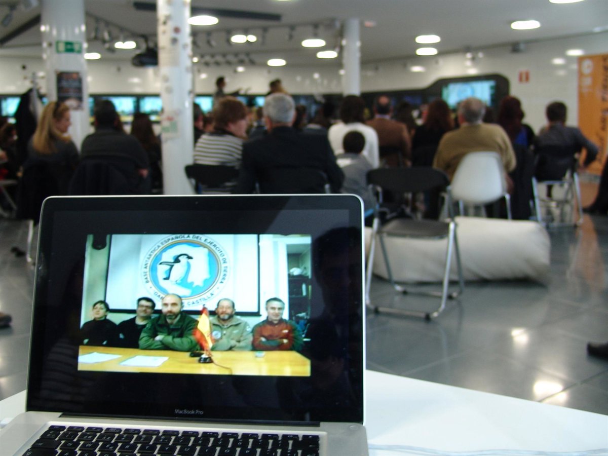 La videoconferencia, retransmitida en 'streaming' y con la participación activa de los usuarios de Internet a través de twitter, ha permitido conocer el trabajo científico que desarrollan las 12 personas que conviven en el continente helado, en un acto promovido por la Academia Galileo de Alicante con el apoyo de Caja Mediterráneo.