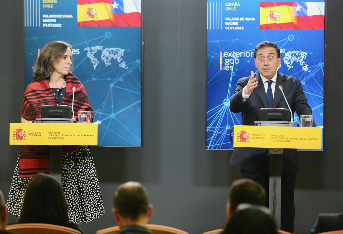 El ministro de Asuntos Exteriores, Unión Europea y Cooperación, José Manuel Albares, y su homóloga la ministra de Relaciones Exteriores de la República de Chile, Antonia Urrejola Noguera - Cézaro De Luca - Europa Press