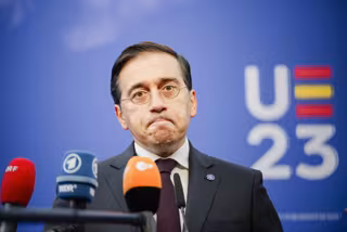 Josep Borrell, Alto representante de la Unión para Asuntos Exteriores y Política de Seguridad y Jose Manuel Albares, Ministro de Asuntos Exteriores, Unión Europea y Cooperación realizan los saludos y primeras declaraciones al inicio del segundo día de l - MATEO LANZUELA