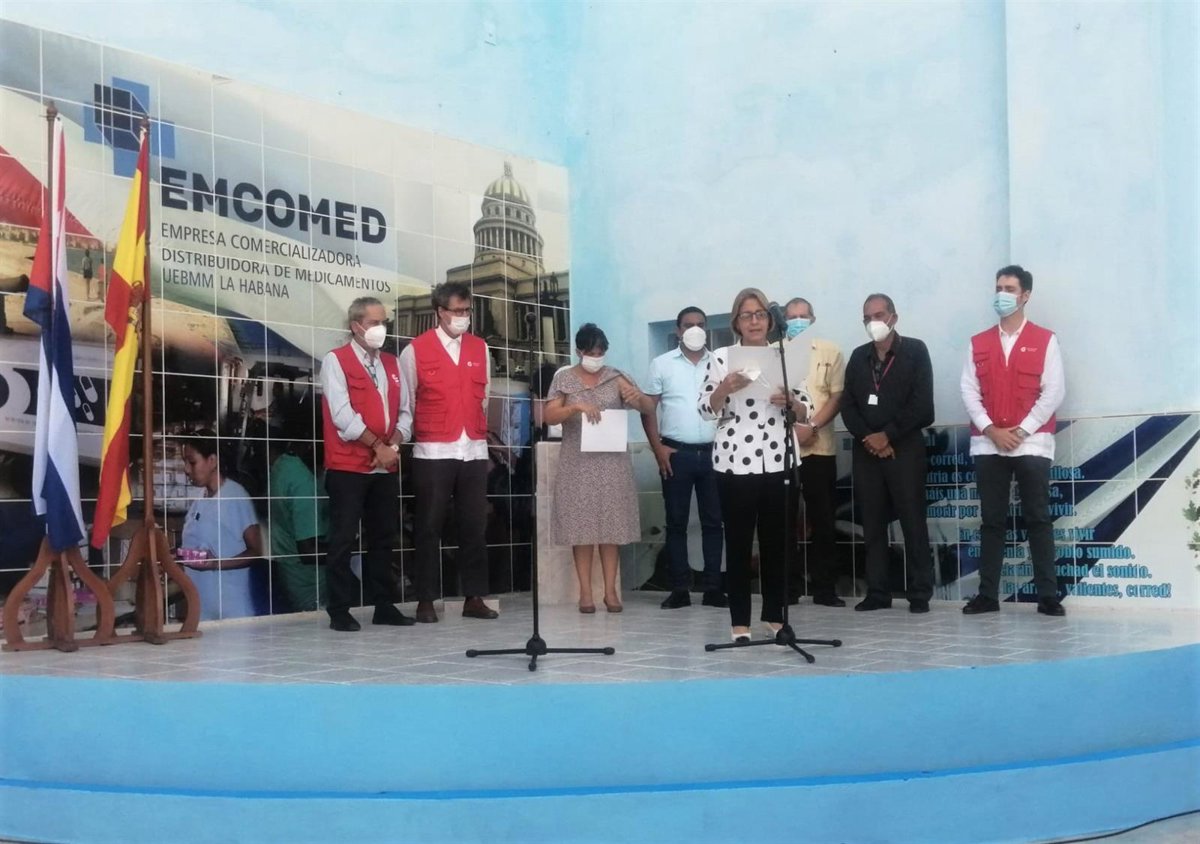 El ministro consejero de la Embajada de España en Cuba, Javier González San Juan, fue el encargado de hacer la entrega formal de la donación este martes. El envío de los suministros, cuyo transporte ha realizado la Federación Internacional de la Cruz Roja y la Cruz Roja de Cuba, responde a un llamamiento del Gobierno de Cuba ante la escasez de medicamentos, ha precisado la agencia de cooperación.