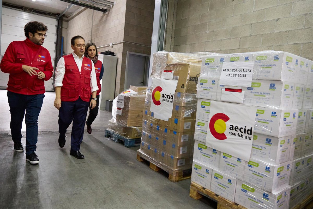 Así lo ha anunciado su titular, José Manuel Albares, junto con el director de la AECID, Antón Leis, desde el centro de carga del aeropuerto de Barajas de donde partirán en las próximas horas los 60 palets de ayuda con destino a Jordania, desde donde los hará llegar hasta Gaza la Media Luna Roja Jordana a través de sus contrapartes. La ayuda tendrá un coste de 265.000 euros, según AECID.
