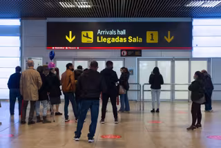 Varias personas esperan en una de las puertas de llegadas, en la Terminal 1 del Aeropuerto Adolfo Suárez Madrid Barajas el día en que Rusia ha anunciado restricciones en su espacio aéreo a compañías británicas o registradas en Reino Unido - Gustavo Valiente - Europa Press