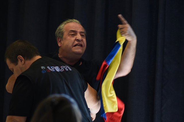 Un espontáneo ha interrumpido al grito de "están matando jóvenes en Venezuela" una rueda de prensa convocada por IU en la que se informaba del proceso electoral a la Asamblea Nacional Constituyente (ANC) venezolana.