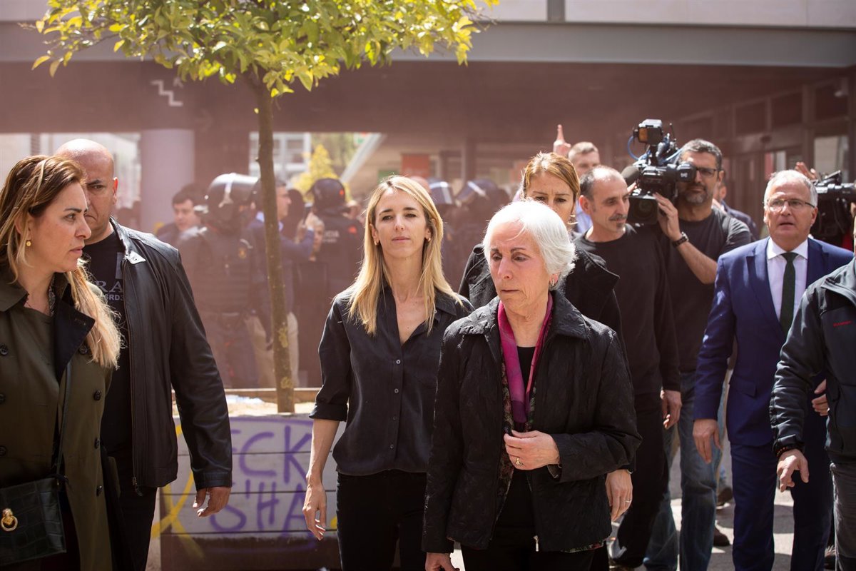 La candidata del PP por Barcelona a las elecciones generales, Cayetana Álvarez de Toledo, ha salido este jueves del acto en el campus de la UAB, mientras seguían concentrados los más de 200 estudiantes que habían intentado impedirle la entrada. Los concentrados han arrojado botes de humo contra la candidata y sus acompañantes, aunque no han sido alcanzados.