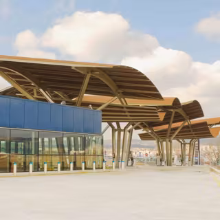 Belén Moneo y Jeff Brock son los arquitectos responsables de la primera 'gasolinera de autor' que se construye en España por iniciativa de un particular. El estudio madrileño Moneo-Brock ha diseñado una gasolinera con unas cubiertas de aspecto ligero y flotante, que simulan el movimiento de las alas de los pájaros. Esta particular estación de servicio está situada en la A-1 a la altura localidad madrileña de San Agustín de Guadalix.