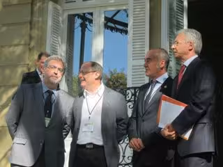 Los miembros del Grupo Internacional de Contacto han sido recibidos por el diputado general de Gipuzkoa, Martin Garitano, y por el alcalde de San Sebastián, Juan Carlos Izaguirre, quienes habían llegado minutos antes al Palacio de Aiete.
