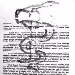 La carta cuenta con el anagrama de ETA en el encabezamiento y después en la firma, junto con el sello de la organización terrorista y debajo, en la parte final de folio, han añadido una parte en castellano, en la que resumen el contenido de la misiva que está escrita en euskera.