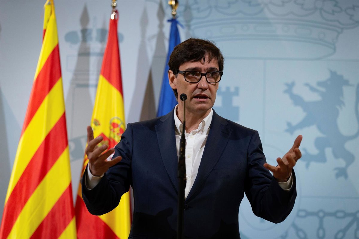 El ministro de Sanidad, Salvador Illa, durante su intervención en una comparecencia donde ha pedido a la Comunidad de Madrid "revisar sus decisiones y escuchar a la ciencia" a la hora de gestionar la pandemia del coronavirus. En Barcelona, Catalunya, (E - Moncloa