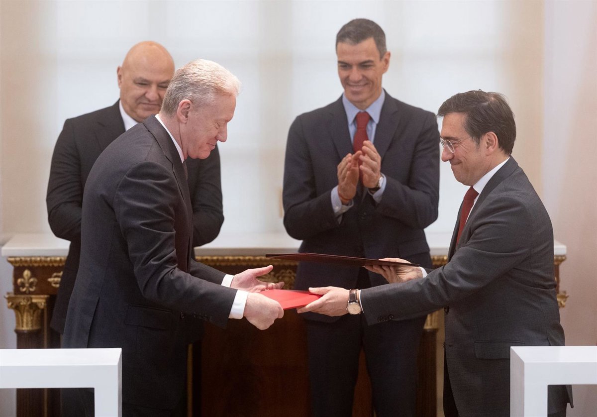 Archivo - El presidente del Gobierno, Pedro Sánchez, el ministro de Exteriores de España, José Manuel Albares, el ministro de Exteriores del Líbano, Youssef Rajji, y el presidente del Líbano, Joseph Aoun, a 2 de febrero de 2026, en Madrid (España). - Eduardo Parra - Europa Press - Archivo