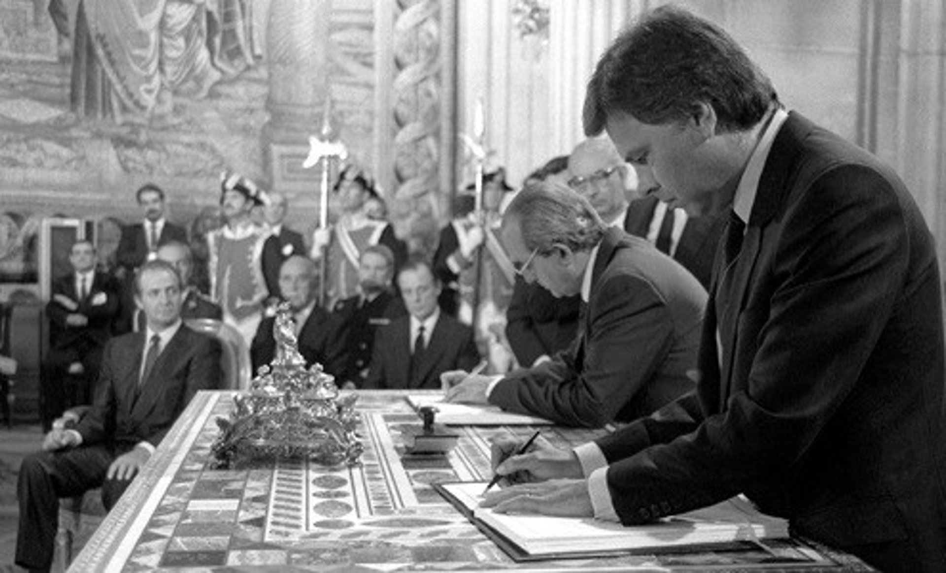 Además, como ministro de Asuntos Exteriores en la segunda legislatura de la democracia, de diciembre de 1982 a julio de 1985, y "tras unas largas negociaciones, estampó su firma junto con la del presidente del gobierno Felipe González en el Tratado de Adhesión de España a las entonces Comunidades Europeas", ha recordado el Departamento.