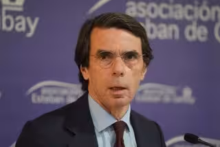 El expresidente del Gobierno, Jose María Aznar, durante su llegada a la conferencia "El fortalecimiento de España en el País Vasco" organizada por la asociación Esteban Garibay en el Hotel Dómine, en Bilbao a 20 de febrero de 2020. - H.Bilbao - Europa Press - Archivo