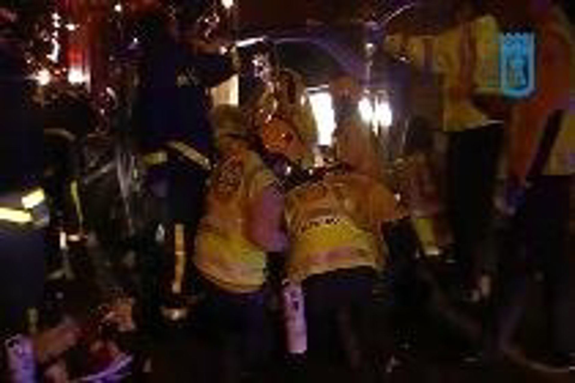 Como consecuencia de la virulenta colisión, una barra de la valla metálica entró en el vehículo y se le clavó en el cuerpo. Los Bomberos del Ayuntamiento de Madrid le rescataron, tras cortar las partes de la valla incrustadas en el abdomen del herido, de 33 años.