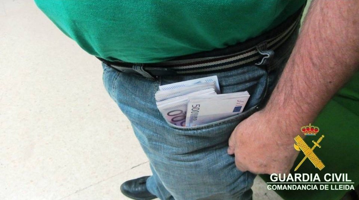 En el vecino pueblo de Oliana, los guardias inspeccionaron un taxi en el que viajaba la madre, de 54 años, con otros 99.625, que contó que el dinero era de su hijo, según el comunicado de la Guardia Civil.