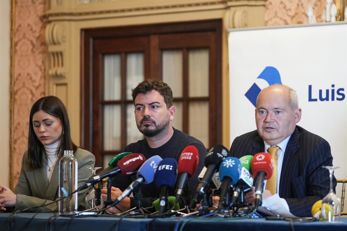 El abogado de la familia de soldado Carlos León, Luis Romero (d), junto al portavoz de la familia del soldado (c), durante su intervención en la rueda de prensa. - María José López - Europa Press