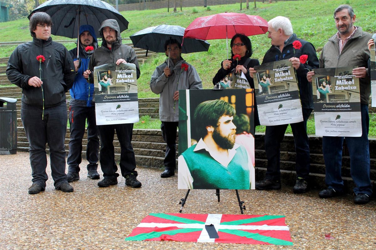 Familiares y allegados suyos han realizado este miércoles una ofrenda floral en la plaza Bertsolari Txirrita del barrio de Altza, en el día en que se cumplen 29 años de su muerte. Allí han procedido a la lectura de un comunicado en el que denuncian que "el 26 de noviembre de 1985 la Guardia Civil detuvo a Mikel y, estando incomunicado en el cuartel de Intxaurrondo, lo perdimos para siempre".