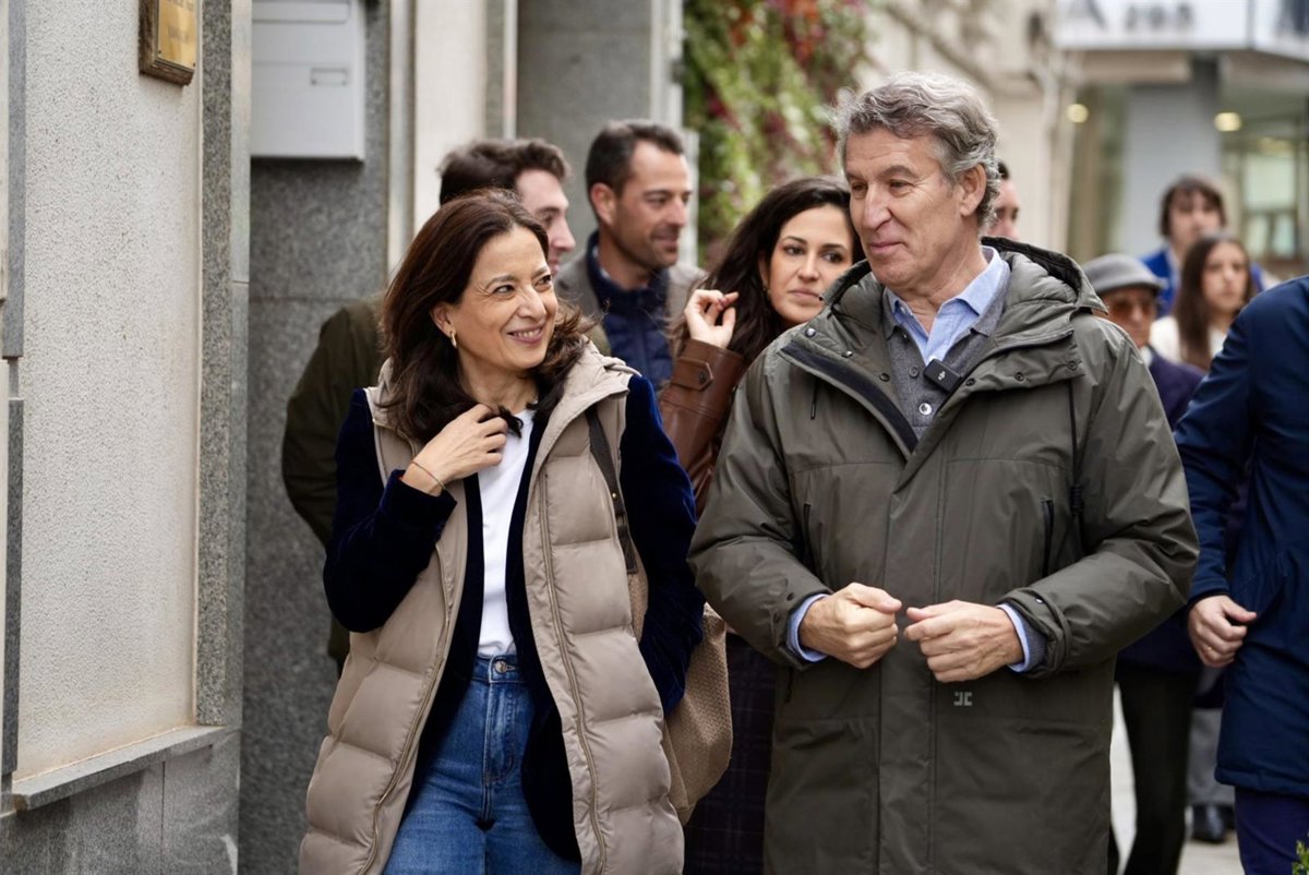 El presidente del Partido Popular, Alberto Núñez Feijóo, y la alcaldesa de Don Benito, Elisabeth Medina, durante un mitin del PP, a 4 de diciembre de 2025, en Don Benito, Badajoz, Extremadura (España). El mitin se enmarca dentro de la precampaña electoral - Andrés Rodríguez - Europa Press