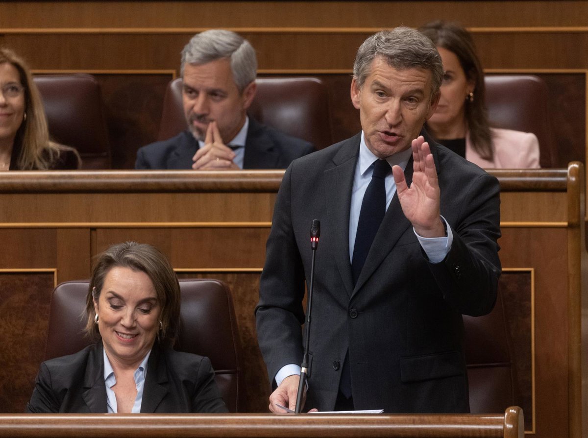 El presidente del PP, Alberto Núñez Feijóo, interviene durante una sesión de control al Gobierno, en el Congreso de los Diputados, a 27 de noviembre de 2024, en Madrid (España). - Eduardo Parra - Europa Press