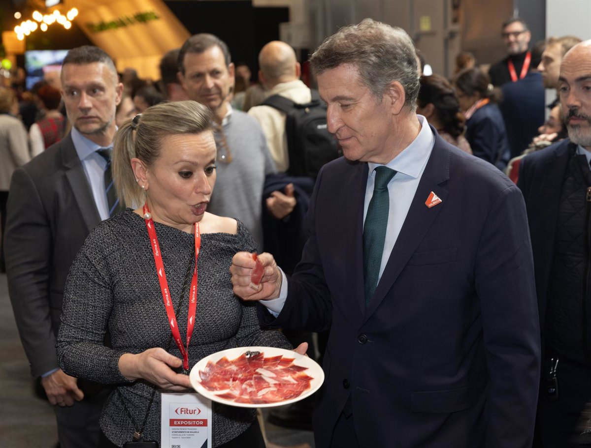En el estand de este último municipio catalán, Feijóo ha degustado una paella de Castelldefels y al visitar el de Extremadura le han ofrecido jamón. Durante su recorrido por los distintos pabellones de Fitur se ha realizado decenas de selfies con ciudadanos y cargos políticos.