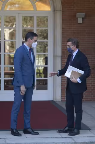 Archivo - El presidente del Gobierno, Pedro Sánchez (i), recibe al presidente nacional del PP, Alberto Núñez Feijóo (d), en La Moncloa, a 7 de abril de 2022, en Madrid (España). Se trata de la primera reunión en el Palacio de la Moncloa tras el nombrami - Alberto Ortega - Europa Press - Archivo