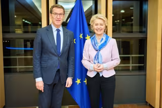 En este contexto, el presidente del PP ha abordado cuestiones de política nacional con Von der Leyen y asuntos como la crisis de inflación, la gestión de los fondos europeos, las reglas fiscales y la reforma de las pensiones, que debe de hacerse, en opinión de Feijóo, "no desde la imposición sino dentro del Pacto de Toledo y con el consenso de los grupos parlamentarios".