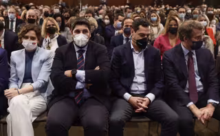 (I-D) La presidenta de la Comunidad de Madrid, Isabel Díaz Ayuso; el presidente de la Región de Murcia, Fernando López Miras; el presidente de la Junta de Andalucía, Juanma Moreno, y el presidente de la Xunta y líder del PP gallego, Alberto Núñez Feijóo - Eduardo Parra - Europa Press